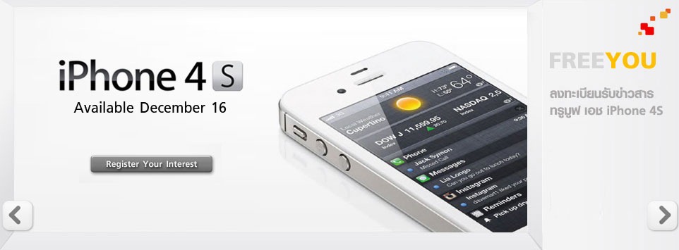 - เปิดจอง iPhone 4S ได้ตั้งเเต่วันที่ 13 ธันวาคมจากผู้ที่ลงทะเบียนมาก่อนหน้า
